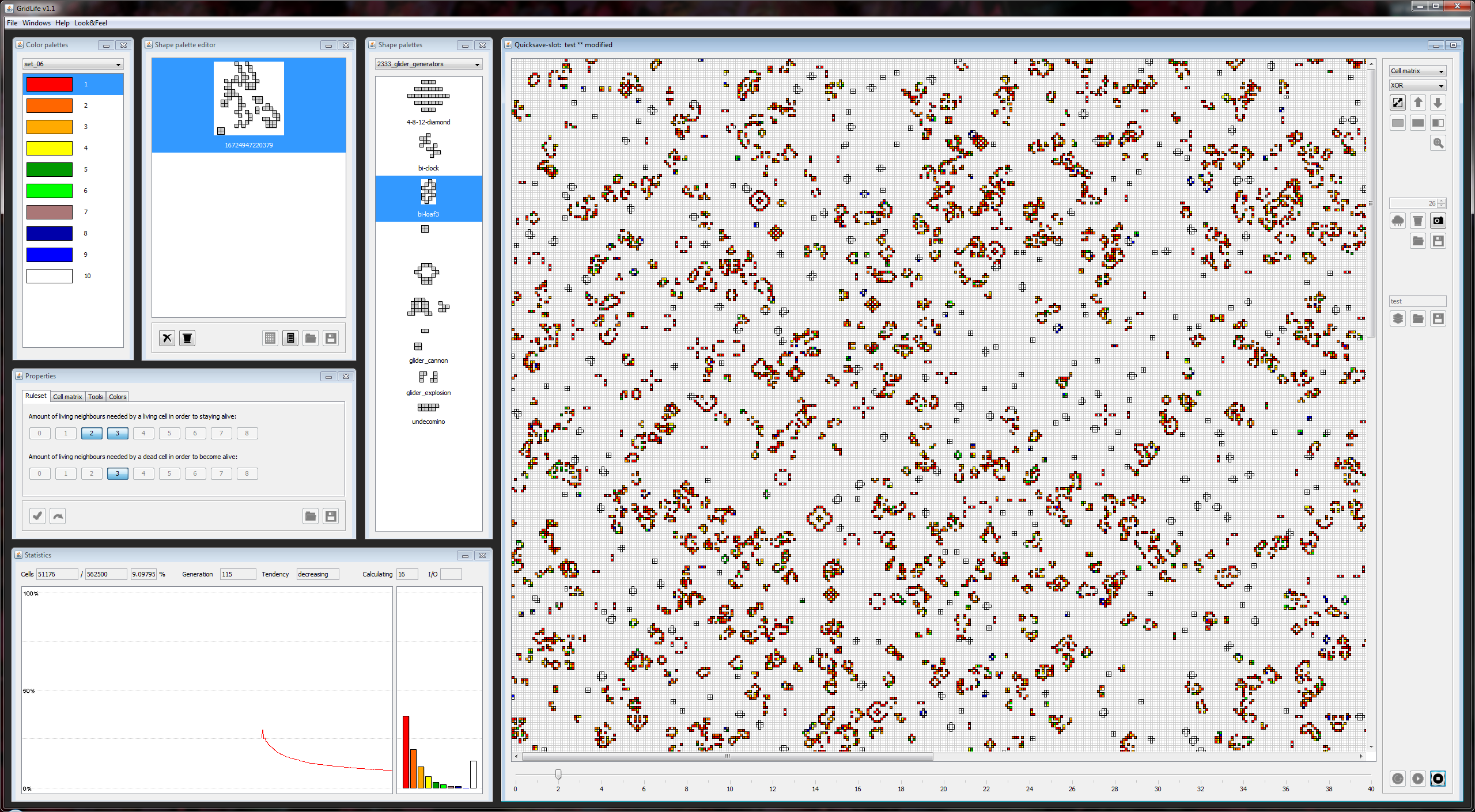 GridLife is a pure Java application which serves as a virtual lab for John Conway's cell simulation Game of Life. The image above shows a screenshot of the application running on my PC under Windows7. GridLife combines an easy-to-use interface with rich functionality and provides you - amongst others - with the following features: