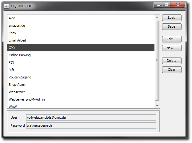 You can save and load, add, edit, delete and clear records. On termination, the application automatically stores the current list of entries. Of course, the image shows some fake data entered just for creating the screenshot.